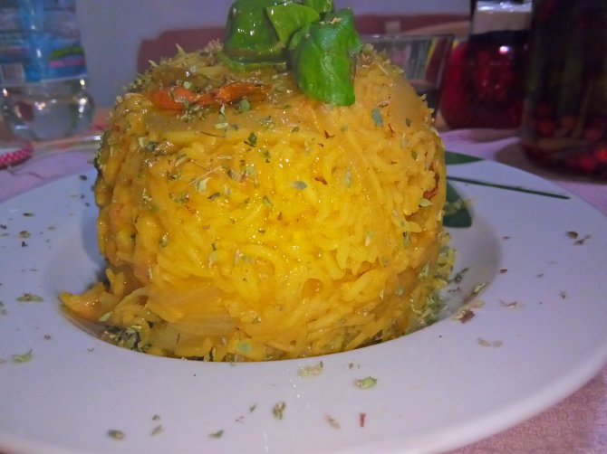 Basmati con cipolla, brodo ai funghi porcini, zafferano e curcuma. Basilico e origano.