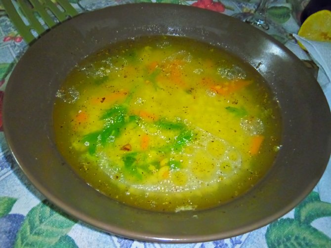 Minestra con brodo di finocchi e carote.