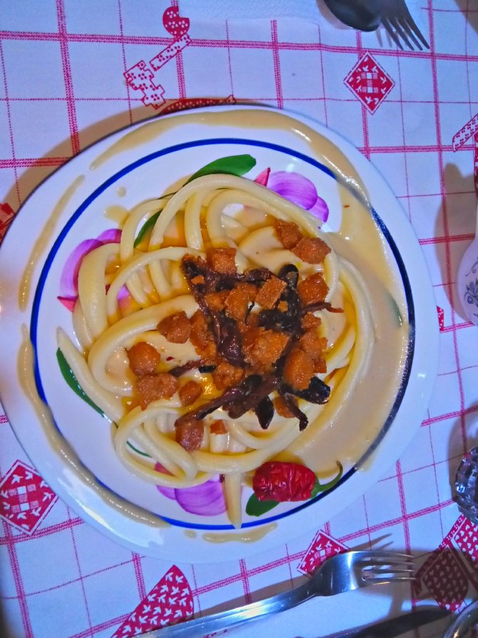 Con il sugo, oppure carbonara veg:
