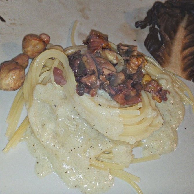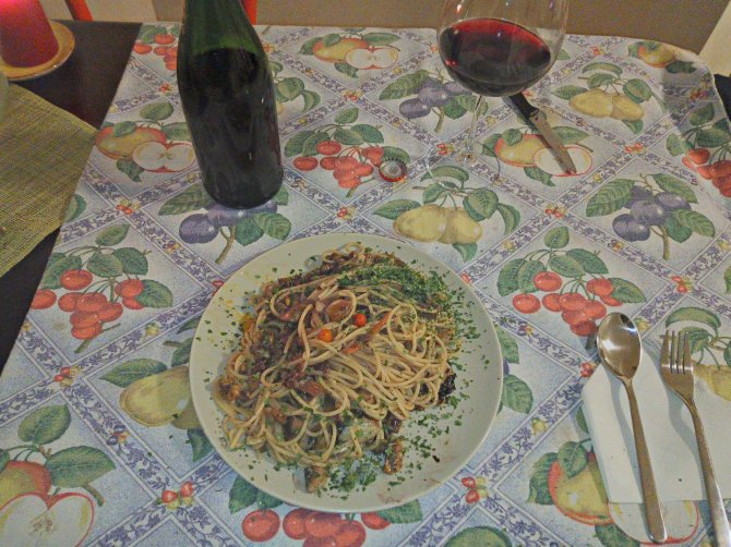 Ho sofferto un po’ e in attesa ho messo in padella aglio e veg wurstel, radicchio e Champignon, curcuma fresca e noci. Poi ho ubriacato tutto con vino bianco. Ho aggiunto la besciamella di soia. Sono approdato con gli spaghetti, cosparso di peperoncino, pepe e prezzemolo. La mia lingua scivola sul tuo corpo finché non trova il tuo inguine umido.
