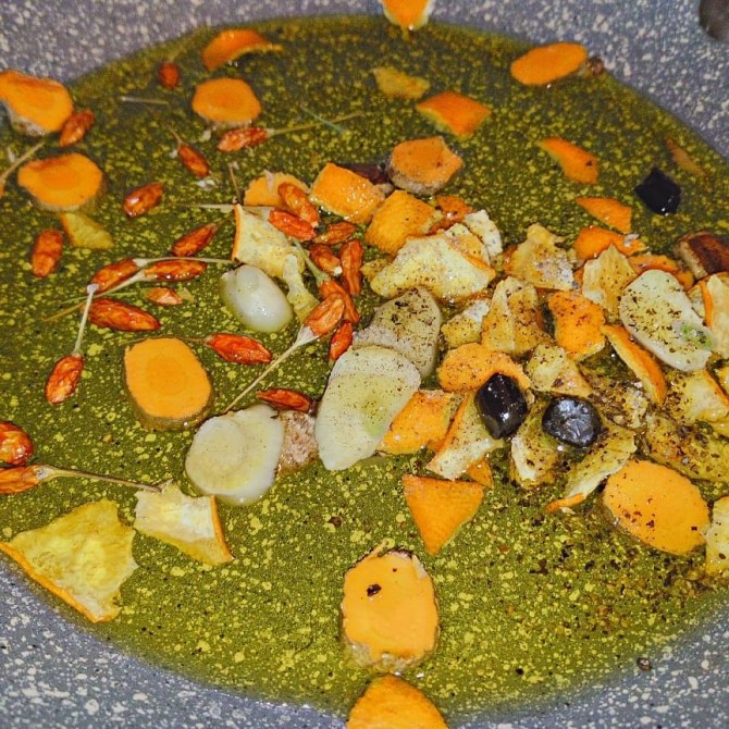 Mix di cereali e basmati. Scorza di arancia e peperoncino, liquirizia! Aglio e curcuma fresca. Menta e cocco.