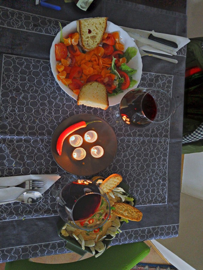 Hummus di cannellini, cavolfiore, carote, aglio e curcuma, peperoncino e olio aromatizzato ai funghi.