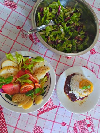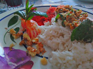 Basmati con sedano bianco, zenzero e pepe verde su crema di radicchio, limone e menta per dare baci freschi.