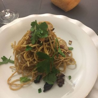 Spaghetti integrali uovo, porcini, aglio e prezzemolo.