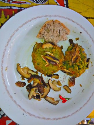 Wurstel di pisello, aglio, porcini con crema di fave.